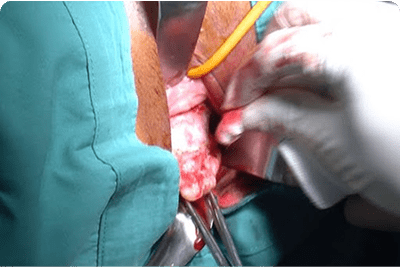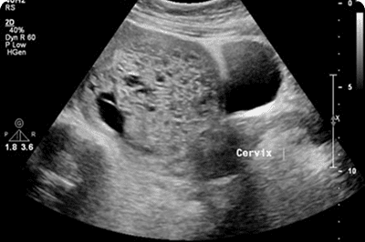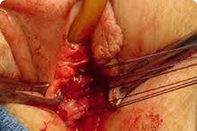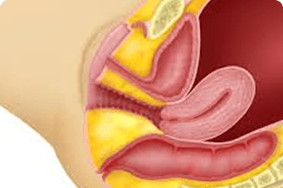 Strong cervical stitch placed via abdomen for pregnancy support.