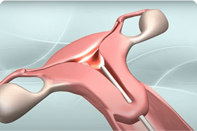Destroys uterine lining to control heavy menstrual bleeding.