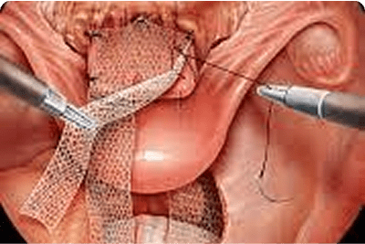 Mesh support surgery to correct uterine or vaginal prolapse.